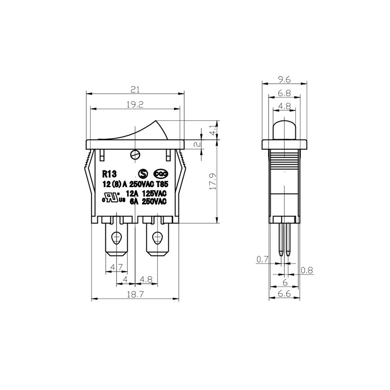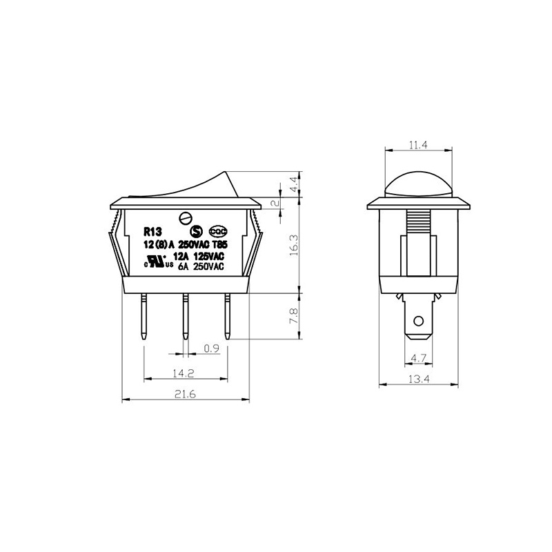 機能面では、R13-13 シリーズは 2 ピンと 3 ピンの両方の端子レイアウトを提供し、SPST (単極単投) および SPDT (単極双投) 回路構成をサポートし、さまざまな電気設計要件に対応します。アクチュエータ上の明確な「0/1」マーキングにより操作が容易になり、白と黒のカラーオプションにより最終製品設計との視覚的な一貫性が可能になります。